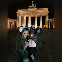 Оба кадра запечатлены у Бранденбургских ворот в Берлине. На первом — совсем маленькая Клавдия (ей всего год) на руках у матери. На втором — уже повзрослевшая девочка стоит рядом с артисткой, держась за ее руки. Орбакайте уточнила, что снимки сделаны с разницей в 12 лет.