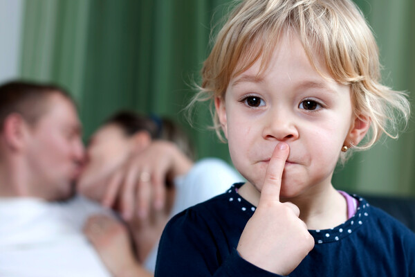 Однако интимная сфера, куда можно отнести страстные поцелуи в губы, все-таки не должна быть на виду. Особенно если в роли зрителей — ваши дети. Совсем маленьких такое проявление чувств может даже испугать («папа нападает на маму») и нанести психологическую травму. Да и для подростков излишняя сексуализация отношений матери и отца тоже ни к чему.