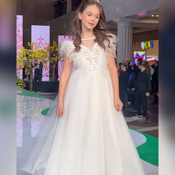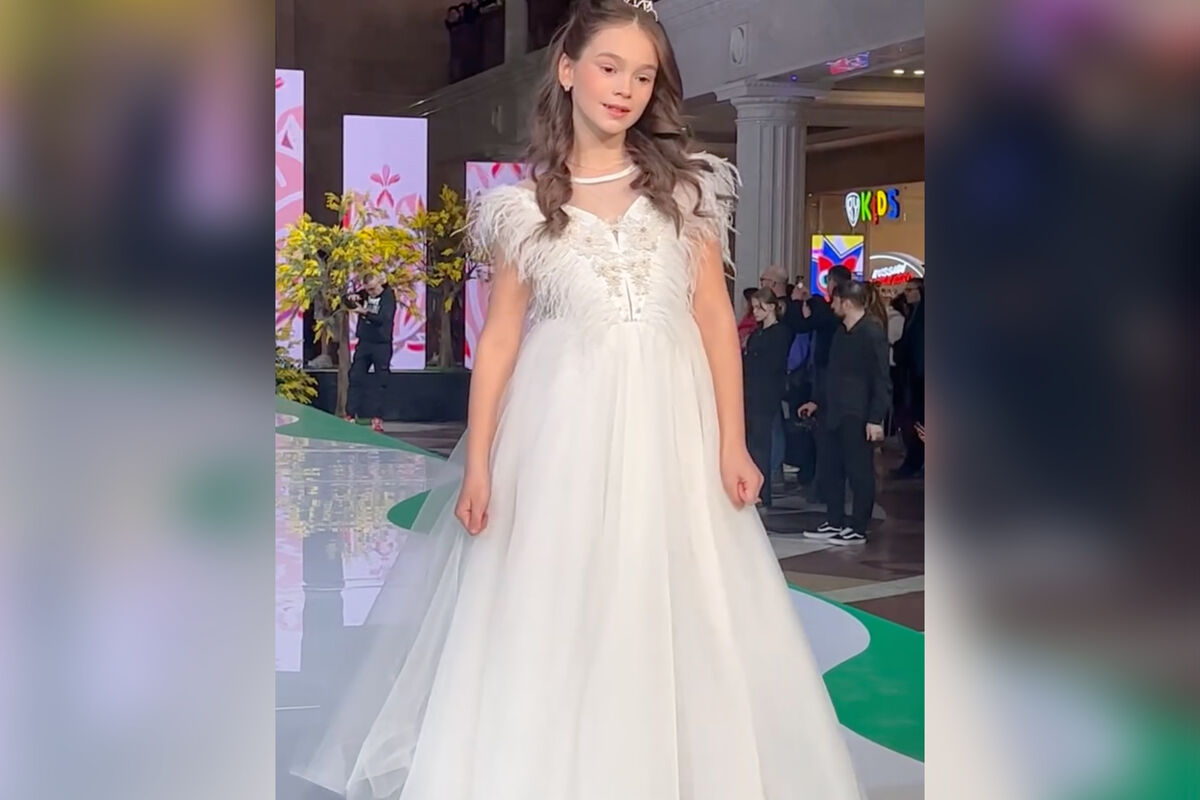 Дочь актрисы Ирины Гриневой и фигуриста Максима Шабалина приняла участие в модном показе. Артистка поддерживала 10-летнюю Василису в зрительном зале и снимала ее проход по подиуму. Девочка появилась на публике в длинном белом платье с перьями и прозрачной спиной.