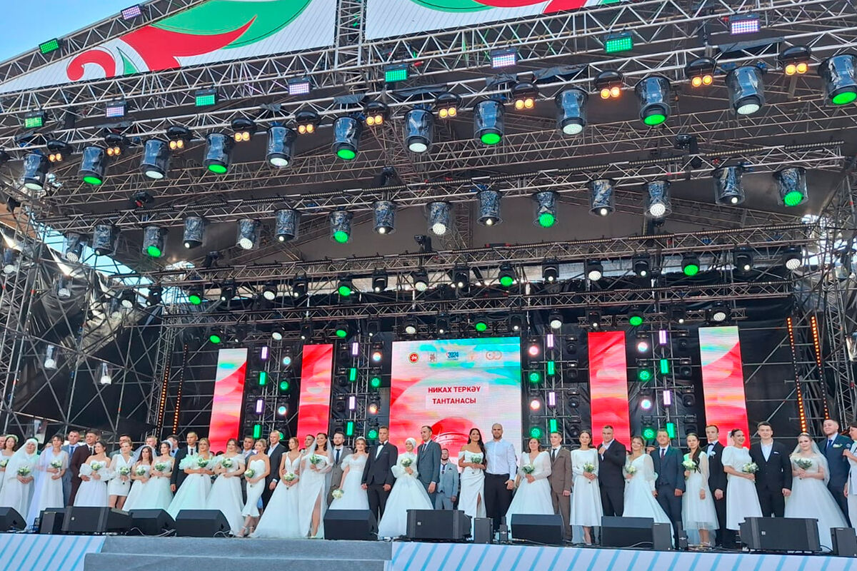 В Татарстане в День республики десятки пар связали себя узами брака на торжественной церемонии в центре Казани. Об этом сообщили в Управлении ЗАГС по региону.