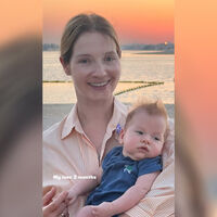 Знаменитость позировала с ребенком на пляже в Дубае, где отдыхает с семьей.