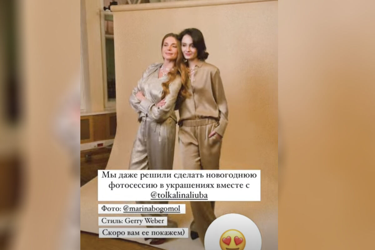 Актриса Любовь Толкалина снялась с дочерью от режиссера Егора Кончаловского в похожих нарядах и эксклюзивных колье. Звезда приняла участие в фотосессии для бренда украшений, которые создает Мария. Девушка поделилась кадрами в соцсетях.