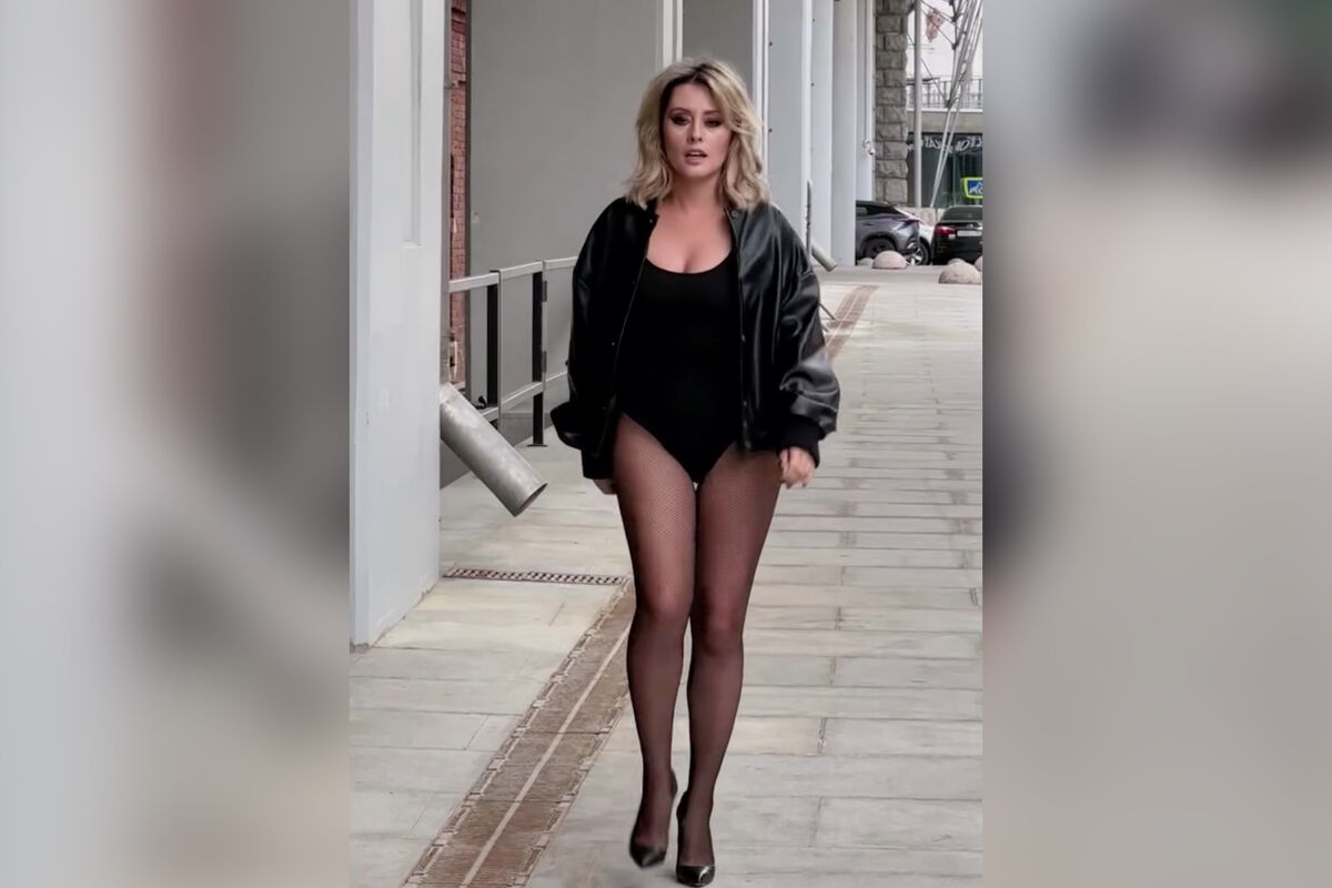 Звезда Comedy Woman Мария Кравченко прошлась по Москве в боди и колготках в сетку, дополнив образ кожаным бомбером. Актриса поделилась в соцсетях кадрами с фотосессии в откровенном наряде.