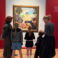 Жена генерального директора Первого канала Константина Эрнста привела их троих детей в Третьяковскую галерею. Актриса Софья Эрнст с дочерьми и сыном посетили экскурсию по выставке «Борис Кустодиев». Звезда поделилась кадрами из галереи в Instagram (владелец компания Meta признана в России экстремистской и запрещена).