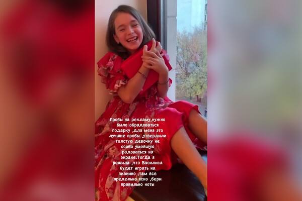 «Пробы на рекламу. Нужно было обрадоваться подарку. Для меня это лучшие пробы. Утвердили толстую девочку, не особо умевшую радоваться на экране. Тогда я решила, что Василиса будет играть на пианино, там все предельно ясно — бери правильно ноты», — отметила артистка, показав видео.