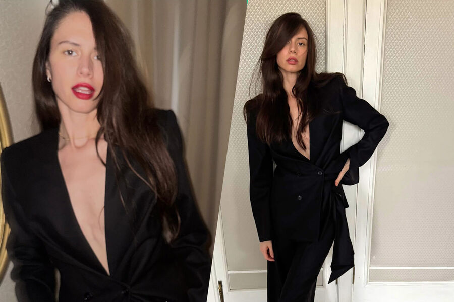 Жена актера Ивана Янковского снялась в жакете с глубоким декольте на голое тело. Звезда сериала «Отель Элеон» Диана Пожарская позировала перед зеркалом в примерочной и показала свой откровенный образ подписчикам в Instagram (владелец компания Meta признана в России экстремистской и запрещена). Артистка дополнила его шелковой юбкой в длине макси.