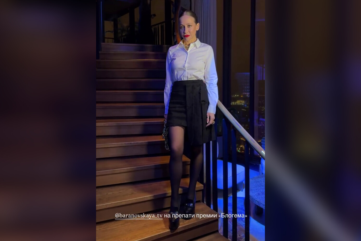Звезда Первого канала Юлия Барановская появилась на публике в черной мини-юбке и белой рубашке. Ведущая шоу «Мужское / Женское» приехала на светскую вечеринку в преддверии вручения премии «Блогема». Она позировала на лестнице в ресторане Jamaa и поделилась кадрами с мероприятия в Instagram (владелец компания Meta признана в России экстремистской и запрещена).