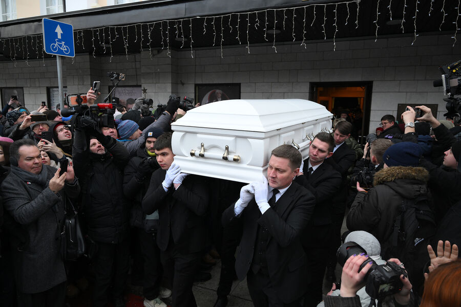 В Театре имени Пушкина прошло прощание с народной артисткой России Верой Алентовой. Проводить актрису в последний пуст пришла ее семья — дочь Юлия Меньшова, зять Игорь Гордин и внуки Таисия и Андрей. А также многочисленные друзья, коллеги и ученики: Константин Хабенский, Александр Олешко, Виктория Исакова, Мария Аронова, Евгений Миронов, Александр Панкратов-Черный, Карен Шахназаров, Игорь Угольников и другие.