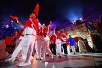 Церемония началась с небольшого фильма. Затем зрители увидели театрализованное представление, световое шоу с олимпийским девизом «Быстрее, выше, сильнее — вместе», различные музыкальные, танцевальные и акробатические номера, а также парад спортсменов-участников. Российские атлеты, которые выступали на Играх в нейтральном статусе, также получили приглашения на церемонию и прошли в колонне вместе со всеми. Всего, по заявлениям организаторов, в параде приняли участие около 1,5 тыс. спортсменов.