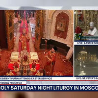 Также около получаса Fox News вел трансляцию и из московского храма Христа Спасителя. Богослужение там провел патриарх Кирилл, в храме находился и президент России Владимир Путин.