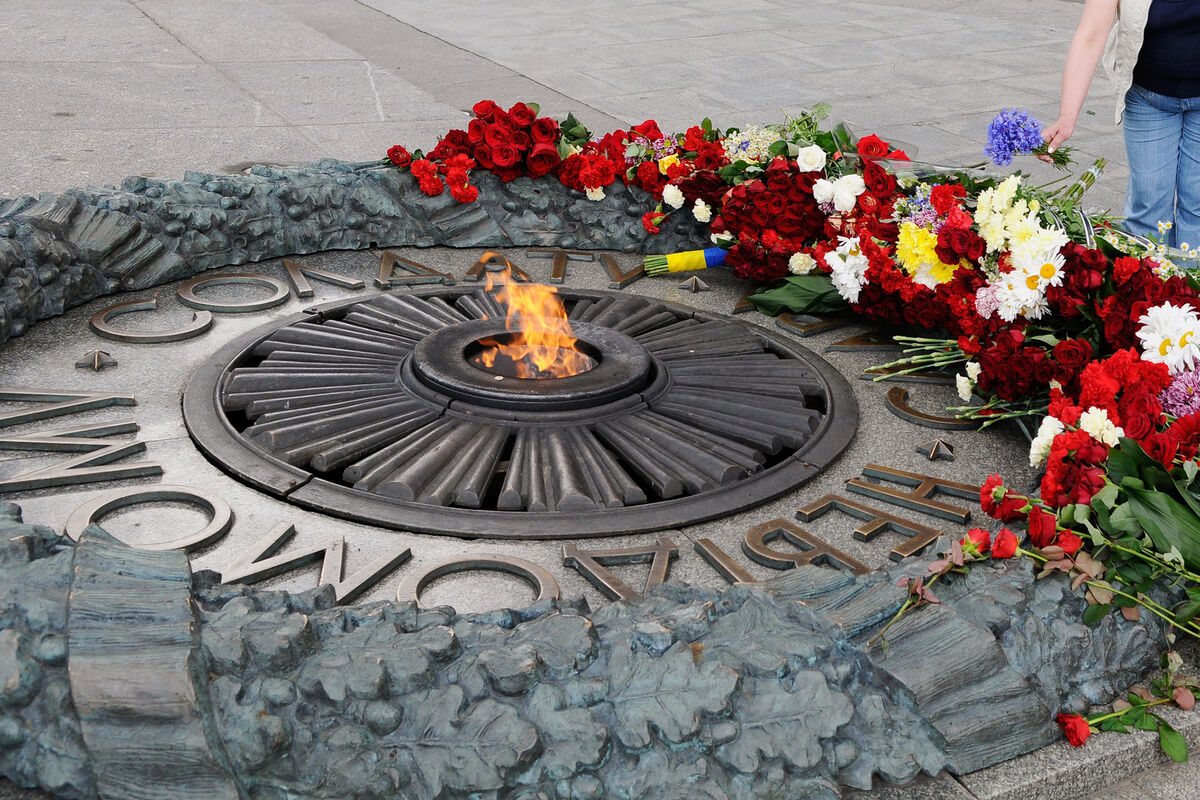 Как передает агентство, солдаты Кремлевского полка от имени лидеров возлагают цветы к стелам городов-героев.