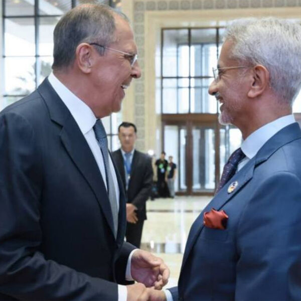 Министерство опубликовало фото со встречи. На нем Лавров и Джайшанкар приветствуют друг друга рукопожатием.
