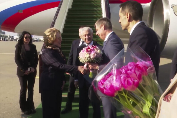Самолет Матвиенко сел в международном аэропорту Гейдар Алиев. В авиагавани ее встретили заместитель председателя Милли Меджлиса (парламента) Азербайджана Али Ахмедов, руководитель рабочей группы по азербайджано-российским межпарламентским связям Полад Бюльбюльоглы и другие официальные лица.