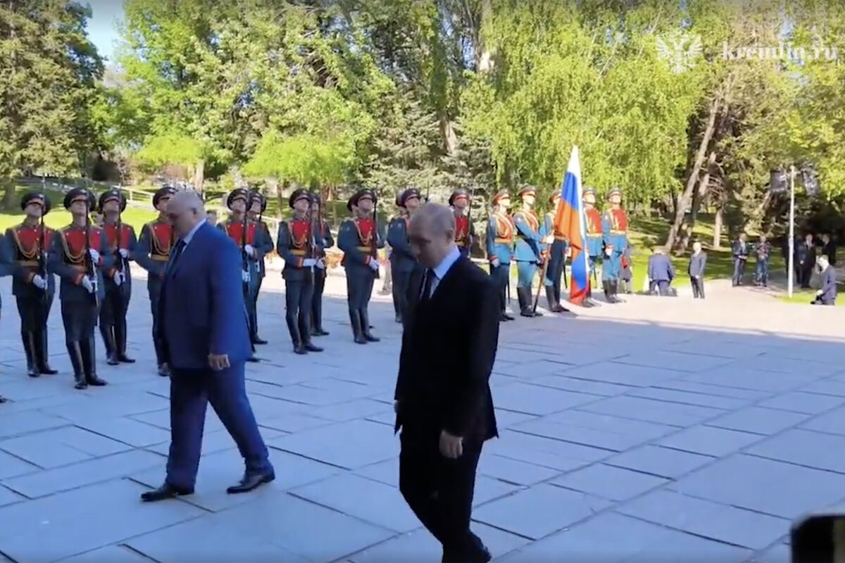 В Волгограде Лукашенко встретили женщины-регулировщицы ретро взвода МВД России по региону. На опубликованных кадрах видно, как девушки торжественно вручают белорусскому лидеру хлеб-соль. Лукашенко при этом похвалил угощение, отметив, что изделие белорусское. 29 апреля Лукашенко приехал в Волгоград, чтобы встретиться с российским коллегой.