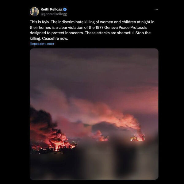 Политолог Юрий Светов в беседе с Tsargrad.tv прокомментировал фото Киева после взрывов, опубликованное спецпредставителем президента США Китом Келлогом.
