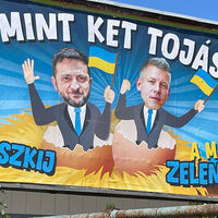 Уточняется, что в Венгрии распространились плакаты, на которых Зеленский и оппозиционный политик Петер Мадьяр изображены вылупившимися из яиц в одном гнезде.