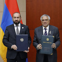 Министр иностранных дел Армении Арарат Мирзоян и его пакистанский коллега Исхак Дар провели встречу на полях саммита Шанхайской организации сотрудничества (ШОС) в Китае и заявили о решении установить дипломатические отношения. Об этом сообщает МИД республики в Telegram-канале.