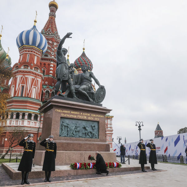 Президент РФ Владимир Путин возложил цветы к памятнику Кузьме Минину и Дмитрию Пожарскому на Красной площади в Москве. Об этом сообщил корреспондент РИА Новости.