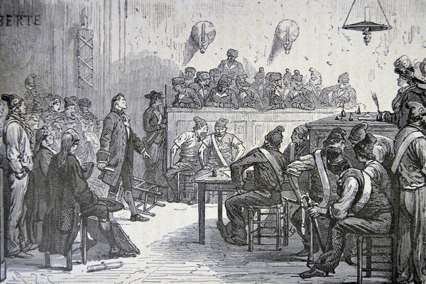 Антуан Лавуазье и другие участники Ferme générale предстают перед Французским революционным трибуналом