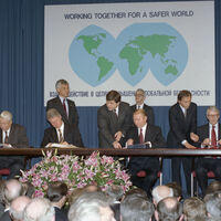 Затем, уже в 1993 году, без всяких договоров, Украина вывела на хранение МБР УР-100Н — для них просто не стало боевых частей. В том же году правительство Ельцина заключило с Киевом договор — Украина ратифицирует подписанные ею договоры СНВ (сокращение стратегических наступательных вооружений) и ДНЯО (договор о нераспространении ядерного оружия), отказывается от претензий на ядерное оружие и Черноморский флот, в ответ на что Россия прощает ей нефтегазовый долг на $2,5 млрд и обещает поставить топливо для ядерных реакторов.