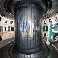 Наконец, токамаки — это не единственное направление исследований в области управляемого термоядерного синтеза. Существуют опытные установки, которые вообще не предполагают использования магнитов, а вместо этого надеются производить энергию за счет серии термоядерных вспышек. Например, американская установка NIF разогревает лазером внешние слои микроскопической мишени, заставляя сферу схлопываться и сжимать центр, заполненный термоядерным горючим. По сути, это небольшой термоядерный взрыв, и в 2022 году в ходе одного из экспериментов взрыв выделил энергии в 1,5 раза больше, чем поглотила мишень. Однако это была лишь одна сотая от того, что потребила установка целиком.