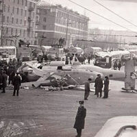 Упавший вертолет Ка-27 на Площади Восстания в Казани, 26 ноября 1980 года