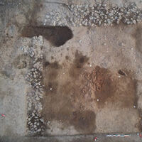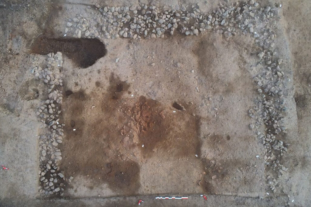 Дом был расположен примерно в 800 метрах от берега моря. Фундамент сложен из гальки разного размера, склеенной илистым осадком. Площадь составляла не менее 50 квадратных метров. Снаружи обнаружили остатки столбов. Это позволяет предположить использование конструкций из дерева или других материалов, например, камыша. В 20 метрах к югу от сооружения был обнаружен большой ров шириной 1,70 метра и длиной 15 метров. Он мог быть источником воды или меткой для определения границ и планировки участка.