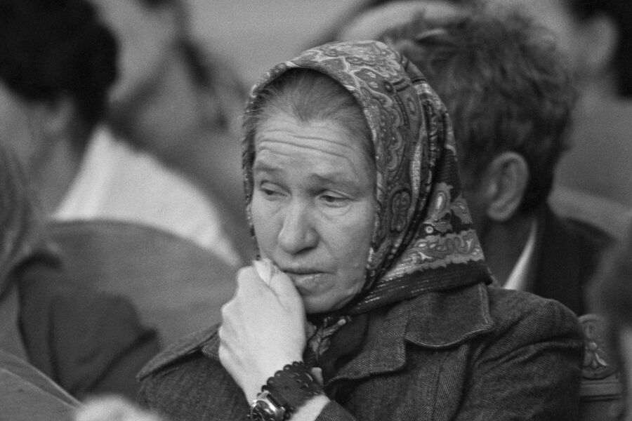 Рабочая железнодорожной станции «Ростов-Товарная» Мижукина, у которой Андрей Чикатило убил ребенка, в зале суда, 1992 год