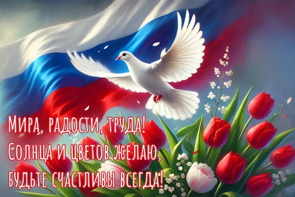 - Мира вам, радости и здоровья! Пусть труд приносит только удовольствие, а отдых — заряд бодрости. С праздником 1 Мая!