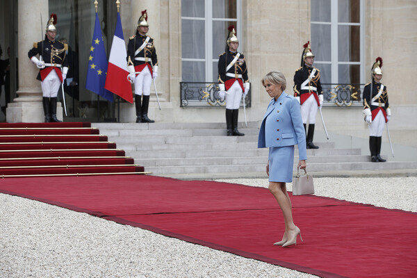 Стиль Брижит Макрон начали обсуждать еще с момента вступления ее мужа в должность президента. На церемонии инаугурации 64-летняя Брижит появилась в небесно-голубом костюме Louis Vuitton, состоящем из укороченного пиджака и мини-юбки. Модные критики назвали выбор Брижит очень смелым для первой леди Франции.