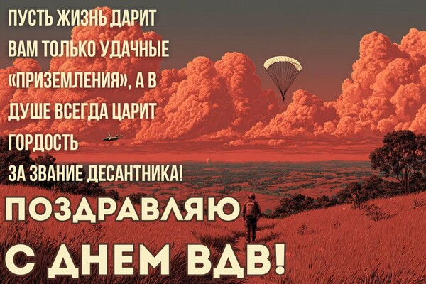 - С Днем ВДВ! Пусть любые препятствия преодолеваются быстрее, чем раскрывается парашют.