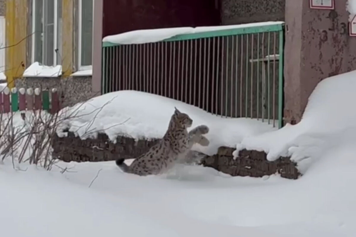 Инцидент произошел 15 января днем и попал на записи камер видеонаблюдения. На кадрах ролика видно, что рысь пробралась в детский сад №119, перепрыгнув через забор.