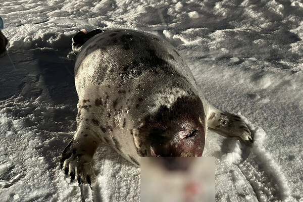 В Мурманской области на автодороге нашли окровавленного тюленя. Об этом сообщает организация по защите животных «Джульбарс».