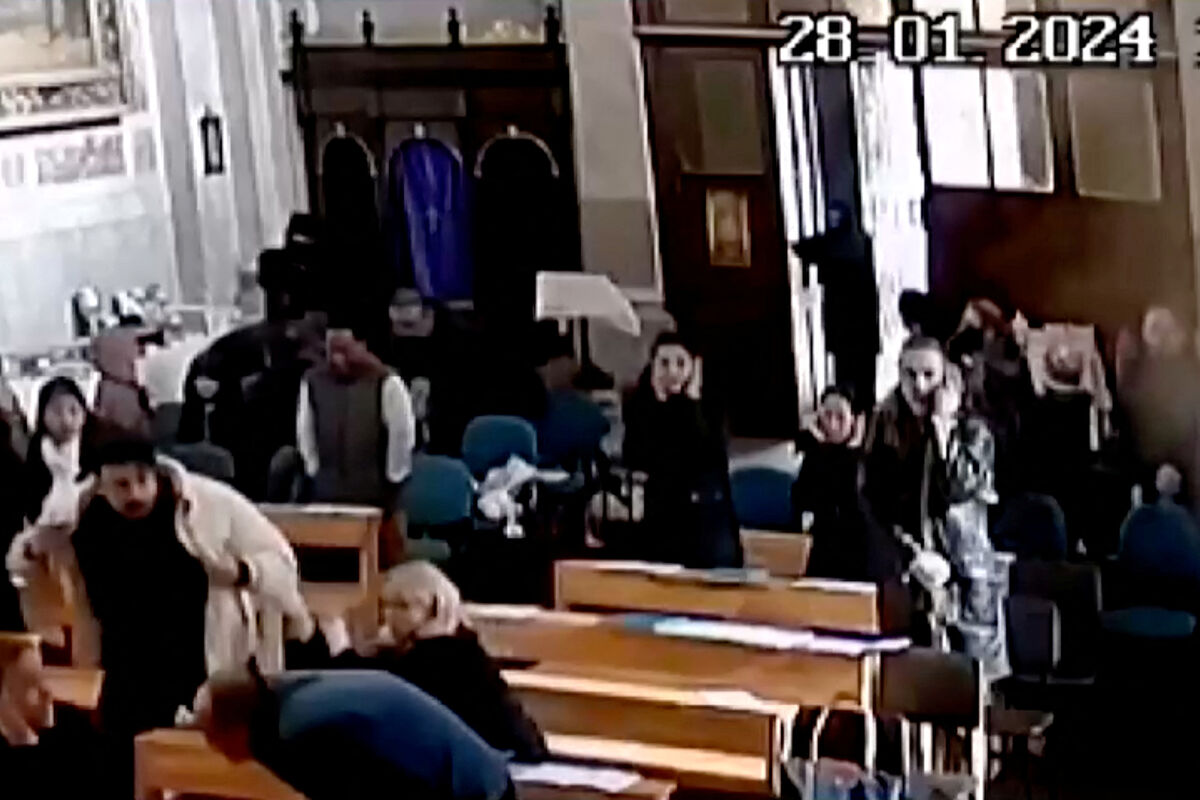 На распространенном видео можно увидеть, что у здания церкви Санта-Мария в районе Сарыер наблюдаются множество сотрудников полиции и скорая помощь.