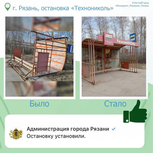 Накануне порывы ветра повалили плохо закрепленную конструкцию на землю. Кроме того, из-за разгула стихии у павильона оторвались металлические стены. О сломанной остановке у завода «Технониколь» в соцсетях сообщил местный житель, его пост вскоре был принят в работу дирекцией благоустройства города.
