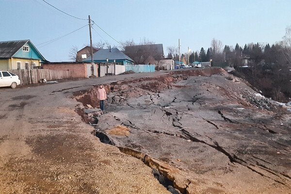 По информации агентства, жители города Аша пожаловались на оползень 11 апреля. На кадрах с места инцидента видно, что часть дороги оказалась разрушена.
