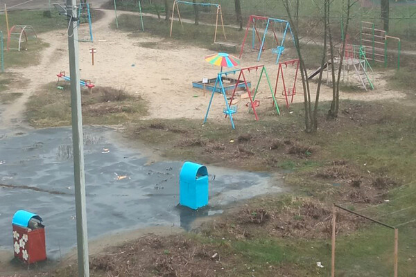 По всей видимости, эта публикация быстро дошла до властей. Уже на следующий день желтый цвет с площадки почти полностью пропал — вместо него коммунальщики предложили красный и зеленый. Как сообщается в Telegram-канале, «непатриотичный» детский городок перекрашивали, несмотря на проливной дождь.