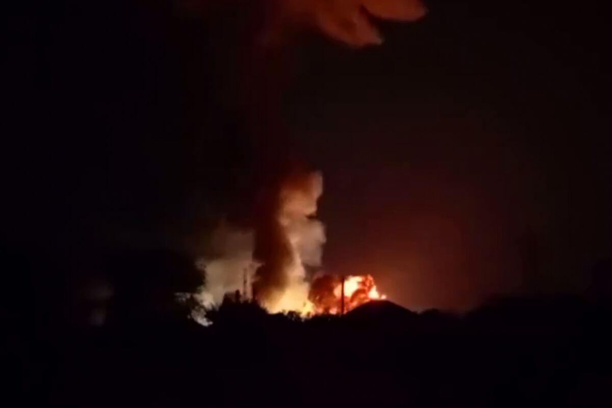 Он рассказал, что атака произошла в 02:21 на территории базы №7. Пострадавших и угрозы населенному пункту нет. В настоящее время экстренные службы ликвидируют возгорание. К устранению пожара и последствий привлечены более 90 человек и 33 единицы техники.