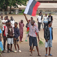 Протестующие в северных штатах Борно, Кадуна, Кано и Кацина размахивали сотнями российских флагов, а некоторые призывали к военному захвату власти. Один из участников этих акций заявил Reuters, что Россия, в отличие от других стран, всегда поддерживала развитие африканских стран. Начальник штаба обороны Нигерии генерал Кристофер Муса назвал размахивание флагом РФ во время антиправительственных протестов «изменническим преступлением». Он добавил, что против задержанных будут применены «серьезные меры».