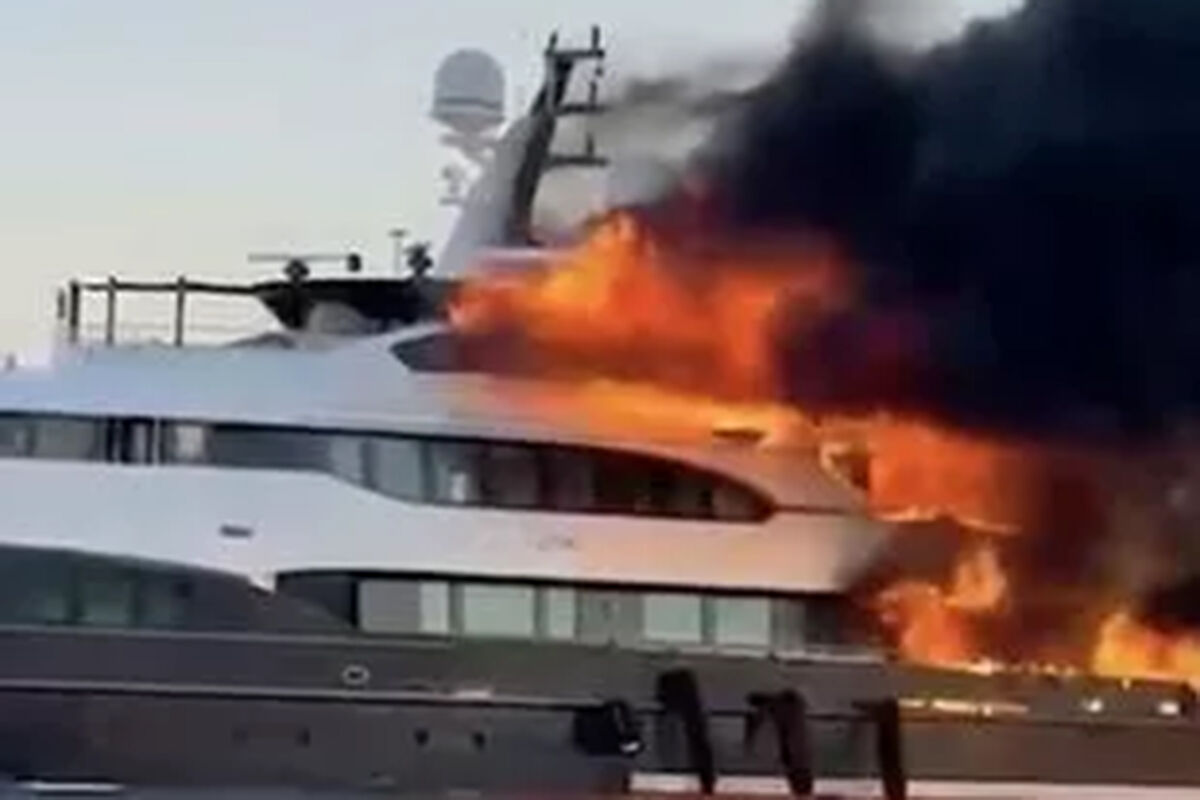 Как сообщается, возгорание произошло в машинном отделении судна. На кадрах, опубликованных береговой охраной Италии, видно, как суперъяхта стоимостью €16 млн тонет, пока пожарные борются с огнем.