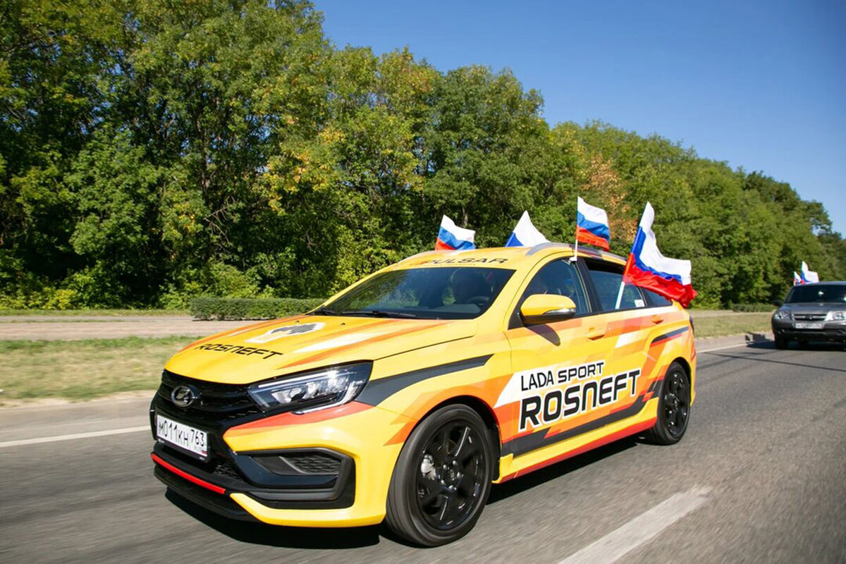 В нем поучаствовали десятки автолюбителей, губернатор Ставропольского края Владимир Владимиров, а также пилоты гоночной команды Lada Sport Rosneft Леонид Панфилов и Максим Туриев .