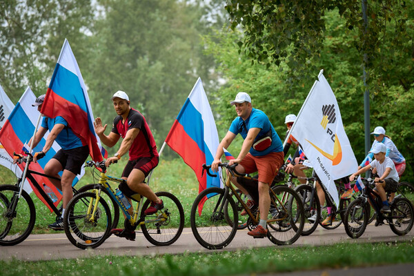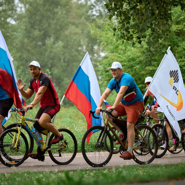 Активисты «РН-Ванкора» и члены их семей в честь праздника проехали на велосипедах 3 км в одежде белого, синего и красного цветов. Нефтяники «РН-Уватнефтегаза» и «Тюменского нефтяного научного центра» преодолели дистанцию 22 км. Велосипеды спортсменов были украшены триколорами.