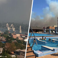 «Город горит с двух сторон — левый берег и Морской Чулек. Город в панике, пожарных машин не хватает. Весь дым идет в город», — сказала она.