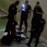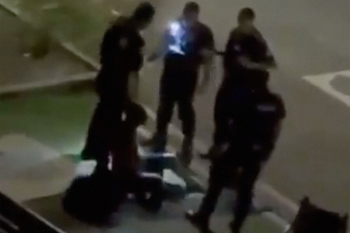 На кадрах с места происшествия видно, как четверо полицейских окружили мужчину, сидевшего в инвалидной коляске. Один из сотрудников полиции повалил его на землю, а когда потерпевшему удалось сесть, нанес ему сильный удар по лицу, отчего инвалид, не проявлявший признаков агрессии, вновь упал.
