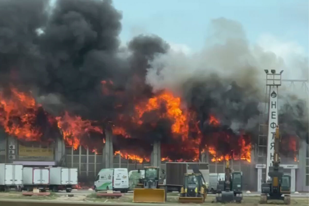 На месте происшествия находятся спасательные службы. Источники отметили, что огнем охвачены секции с бытовой техникой и оптовая точка продаж мягких игрушек.