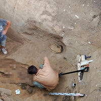 «Погребение было обнаружено на самом дне раскопа. Оно принадлежало мужчине, лежащему вытянуто на спине непосредственно на скале. У плеча погребенного был размещен пояс», — рассказали в музее.