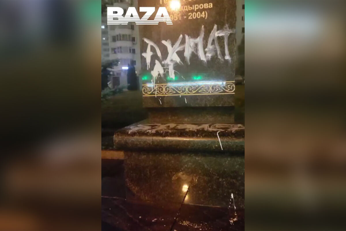 Вандалы в ночь на 13 ноября написали на монументе надпись «Ахмат — Слива». Ее обнаружили коммунальщики утром и стерли.