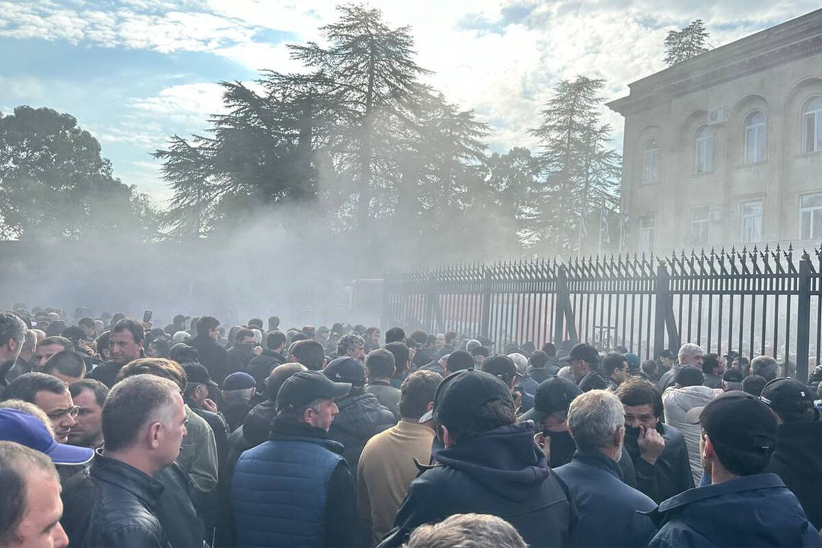 В протестах участвуют несколько тысяч человек, включая оппозиционного лидера Адгура Ардзинбу. Они протаранили на автомобиле металлические ограждения и прорвались к зданию парламента.