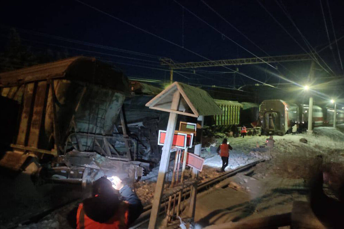 18 декабря в районе Ковды Мурманской области пассажирский поезд, следовавший из Мурманска в Санкт-Петербург, столкнулся с грузовым и сошел с рельсов. На кадрах с места инцидента, опубликованных в соцсетях, видно, как один из вагонов двухэтажного поезда перевернулся на бок и перегородил пути. Северо-Западная транспортная прокуратура организовала проверку.