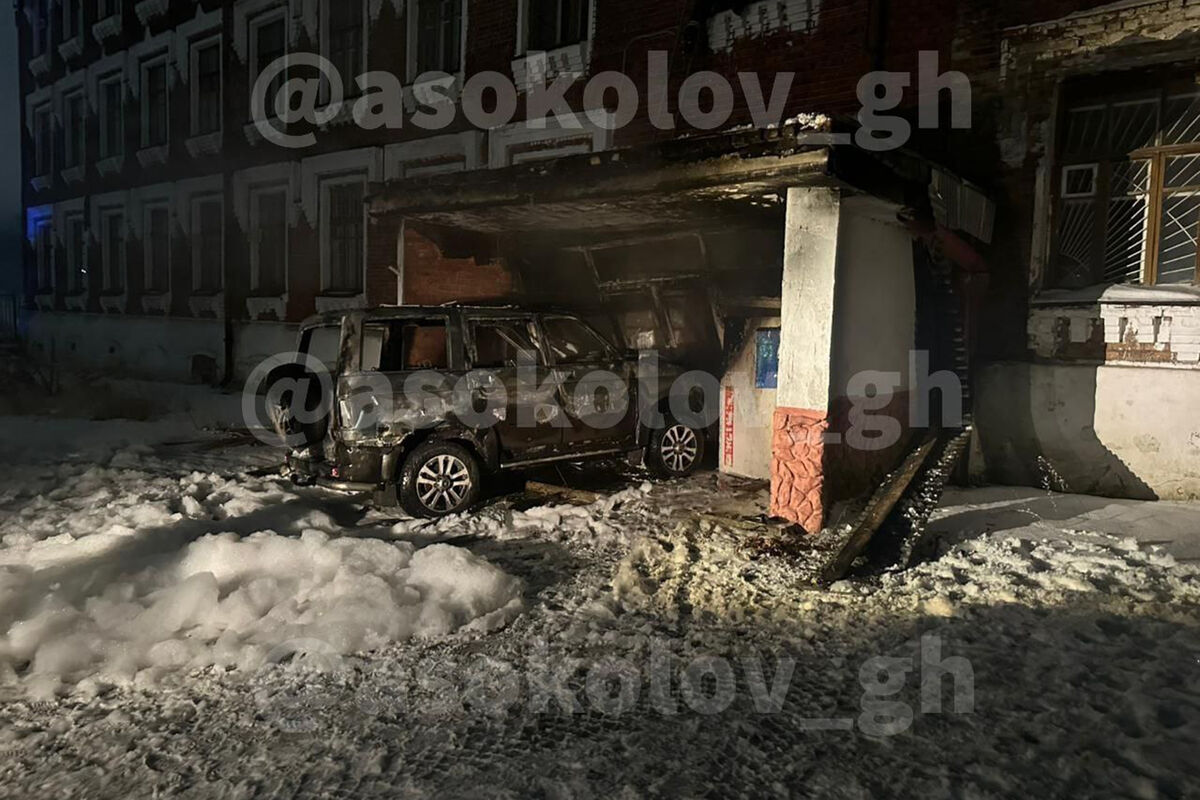 Водитель УАЗа протаранил здание военкомата и поджег авто в Гусь-Хрустальном